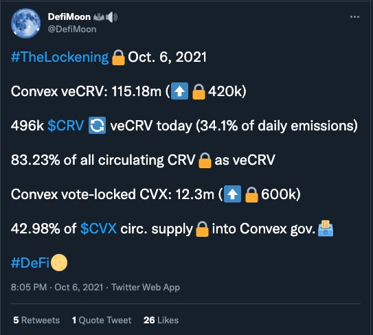 Long story short, Convex managed to gain nearly 50% voting rights in Curve. This voting power gives holders of CVX an outsized influence in DeFi yields.