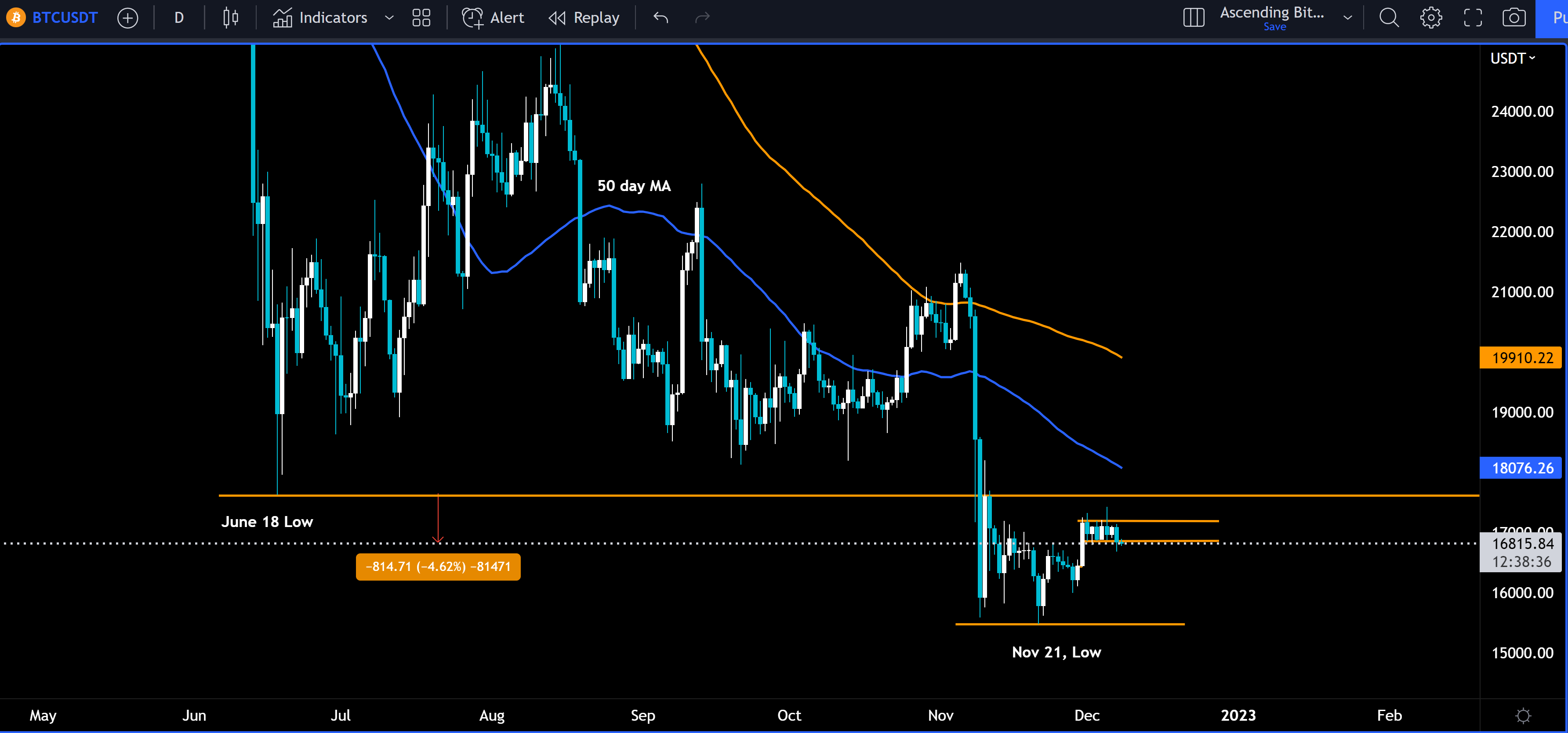 We will be watching for the reaction to the US stock market open. It is hard to imagine a scenario where stocks continue to sell off and BTC is able to rise back above $17000.
