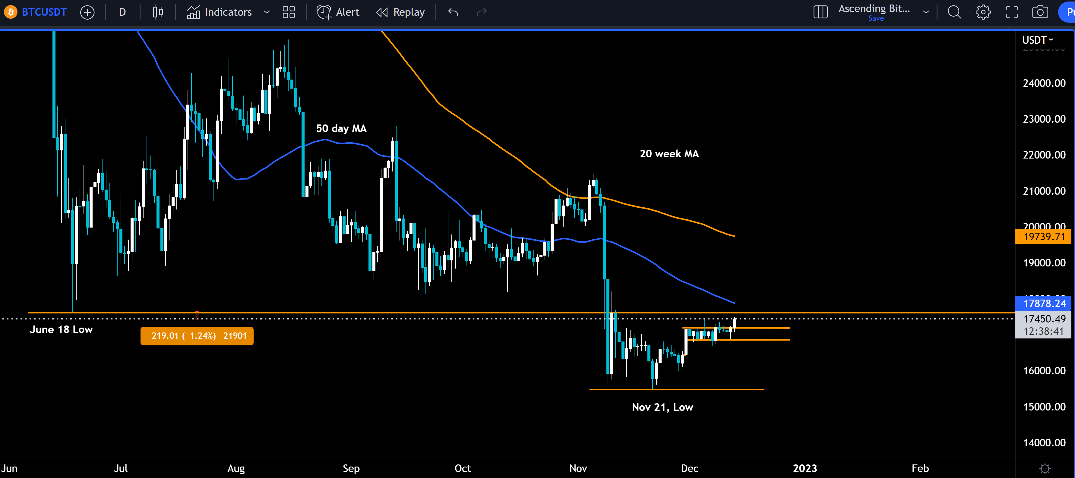 $17800 - The 50 day moving average