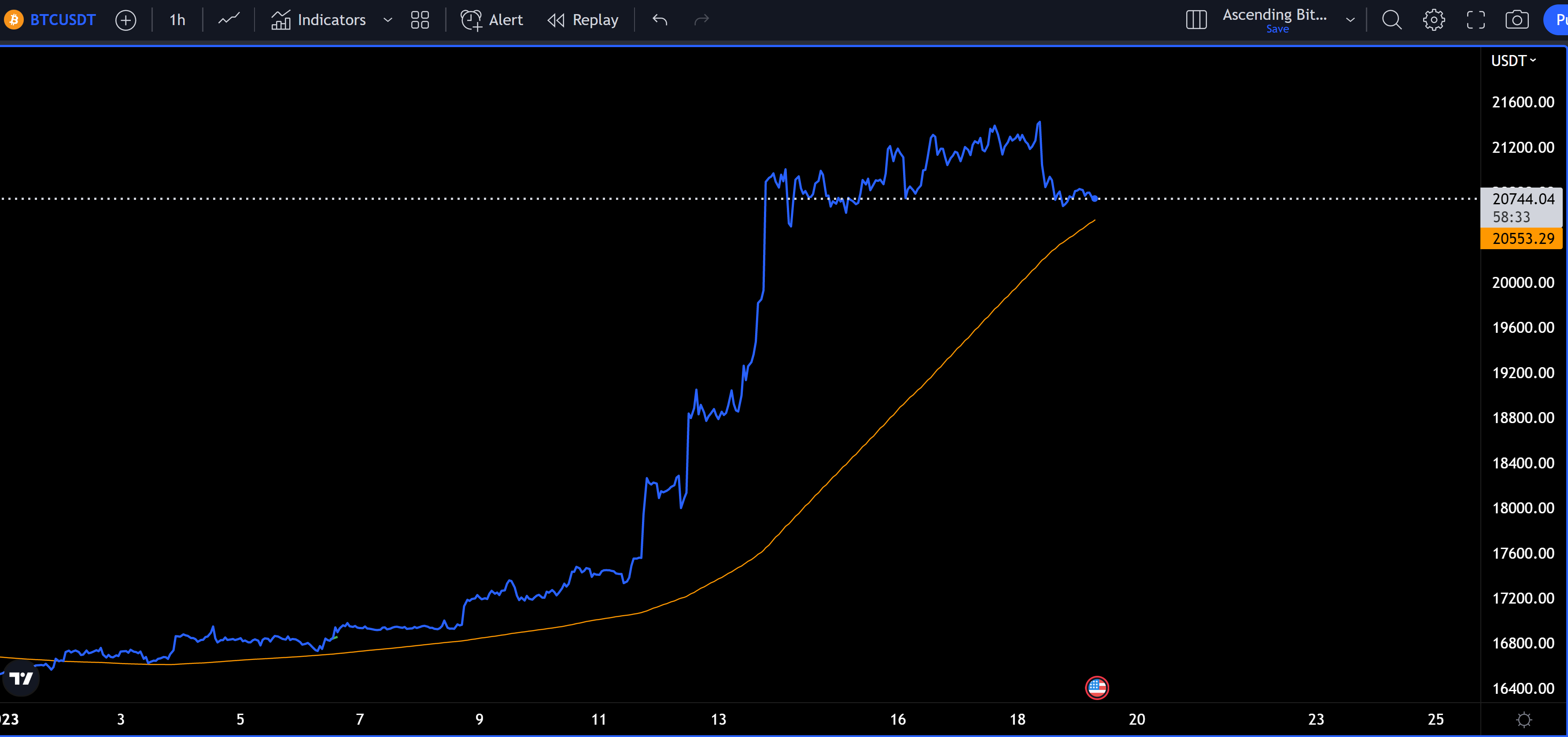Since the beginning of the year BTC has been trading above its one week moving average (showing in orange).